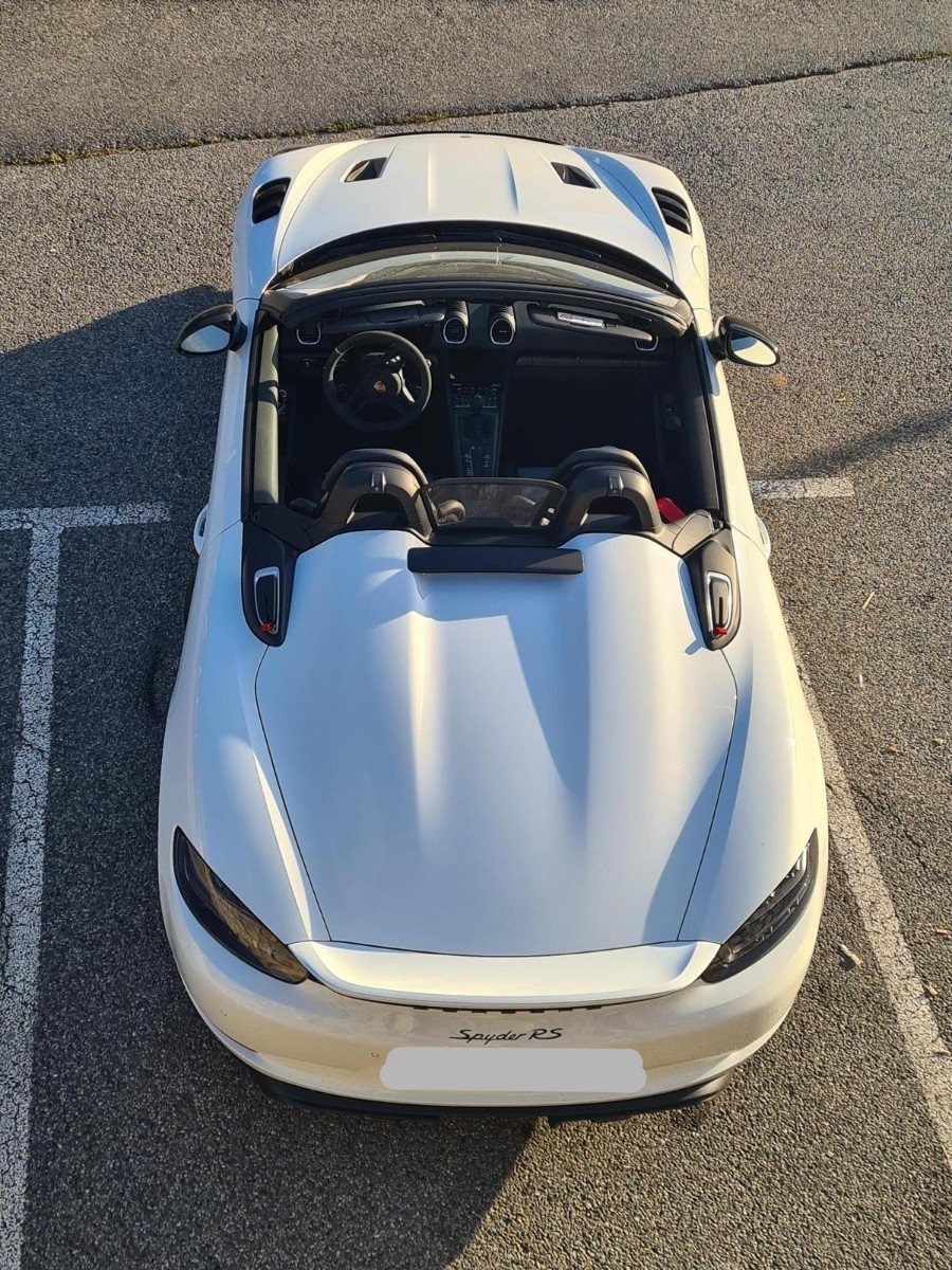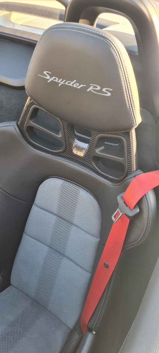 Abs, Accoudoir central, Airbags frontaux, Anti-démarrage, Assistance stationnement arrière, Baguettes de seuil de porte carbone illuminées ''Spyder RS'' , Bluetooth, Boîte de vitesses 7 rapports - Boîte automatique à double embrayage (PDK), Ceintures rouge indien, Climatisation automatique, Fermeture centralisée, Feux PDLS, Filet de rangement, GPS, Hifi BOSE surround sound system, Jantes couleur argent, Kilométrage garantie, LIFT (levage de l'essieu avant), Montant du pare brise en noir, Ordinateur de bord, Pack chrono, Phares à LED, Radar arrière de détection d’obstacles, Régulateur de vitesse, Reprise possible, Réservoir 90 l, Rétroviseur central anti éblouissement automatique et détecteur de pluie, Rétroviseurs carbone, Système Start/Stop, Tapis de sol, Volant cuir, contactez-nous