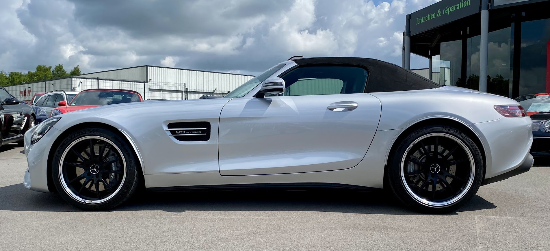/Argent iridium, /AVERTISSEUR D'ANGLE MORT, /CAMERA AVANT, /CAMERA POUR MANOEVRES, /CHAUFFAGE ESPACE NIVEAU DE LA TÊTE, /Cuir Exclusive - noir/rouge, /INTÉGRATION POUR SMARTPHONE APPLE CARPLAY, /Jantes AMG GTR Véritable, /Mercedes-AMG GT Roadster, /PACK MÉMOIRE (SIÈGE CONDUCTEUR, COLONNE DE DIRECTION ET RÉTROVISEURS), /RÉGULATEUR DE VITESSE ET DE DISTANCE PRO (DISTRONIC PRO), /Sièges Electrique Chauffant, /VOLANT AMG CUIR NAPPA, Abs, Accoudoir central, Aide au démarrage en pente, Aide au freinage d’urgence, Airbags frontaux, Airbags latéraux, Airbags rideaux, Alarme, Allumage automatique des feux, Anti-démarrage, Anti-patinage, Auto-radio commandé au volant, Bluetooth, Caméra de recul, Climatisation automatique, Contrôle pression des pneus, Détecteur de pluie, Direction assistée, ESP, Fermeture centralisée, Intérieur cuir, Kilométrage garantie, Limiteur de vitesse, Ordinateur de bord, Phares à LED, Radar arrière de détection d’obstacles, Radar avant de détection d’obstacles, Régulateur de vitesse, Répartiteur électronique de freinage, Rétroviseurs électriques, Rétroviseurs rabattables, Siège électriques, Verrouillage automatiques des portes en roulant, Vitres électriques, Volant cuir, Volant multifonctions, Volant réglable, Volant sport, contactez-nous